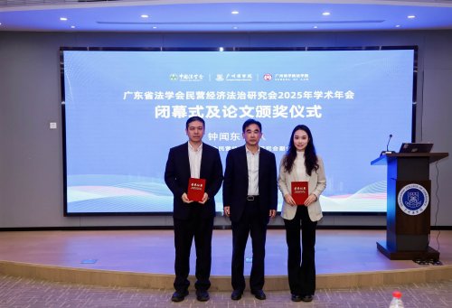本次年会闭幕式及论文颁奖仪式在广州商学院求真楼八教101报告厅举行,仪式由广东省法学会民营经济法治研究会副会长钟闻东主持。